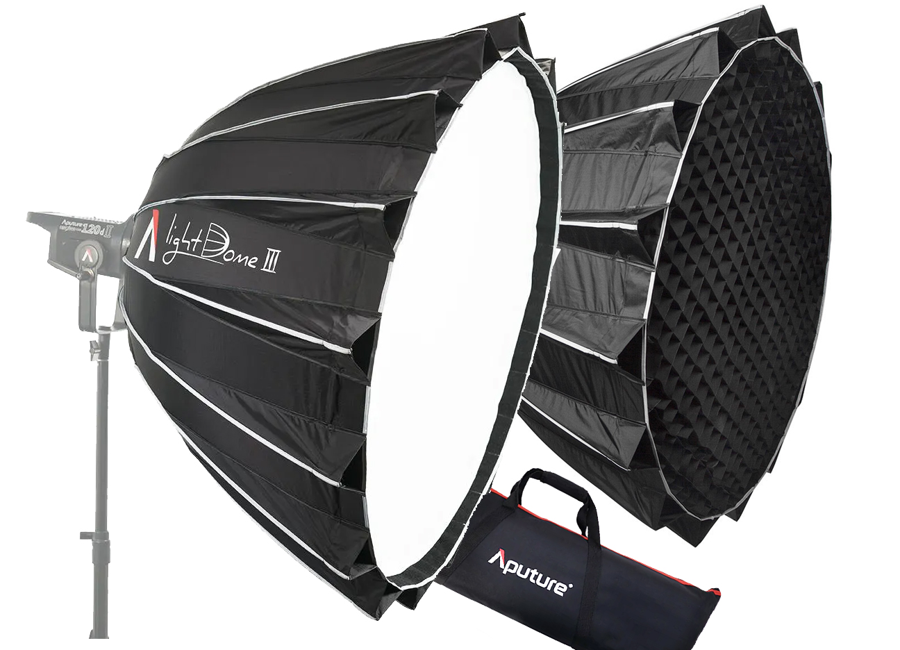 The Light Dome III is a great all-rounder and compatible with the Aputure Light Storm fixtures up to the STORM 1200X or the equivalent from other manufacturers that have a Bowens Mount. Gives a round catchlight so great for portraits or interviews etc. Comes with both 1.5-stop and 2.5-stop front diffusers and 45º soft-grid for added flexibility. This updated model features the new quick-fold mechanism so super fast to set up and take down.