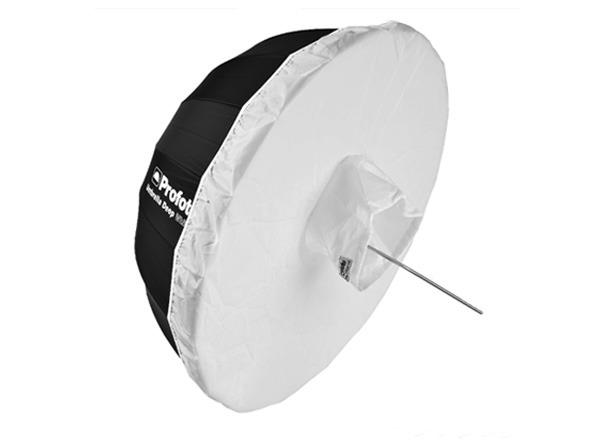 The Profoto Umbrella Diffuser softens and spreads the light in a similar way to a softbox. The Deep Silver Silver 130cm Umbrella will give a similar light spread as an Octa softbox of similar size but as the light is reflected into the umbrella is even softer than a direct softbox. Also very quick to set up and more portable to travel with.