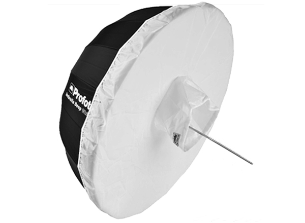 The Profoto Umbrella Diffuser softens and spreads the light in a similar way to a softbox. The Deep Silver XL 165cm Umbrella will give a similar light spread as an Octa softbox of similar size but as the light is reflected into the umbrella is even softer than a direct softbox. Also very quick to set up and more portable to travel with.